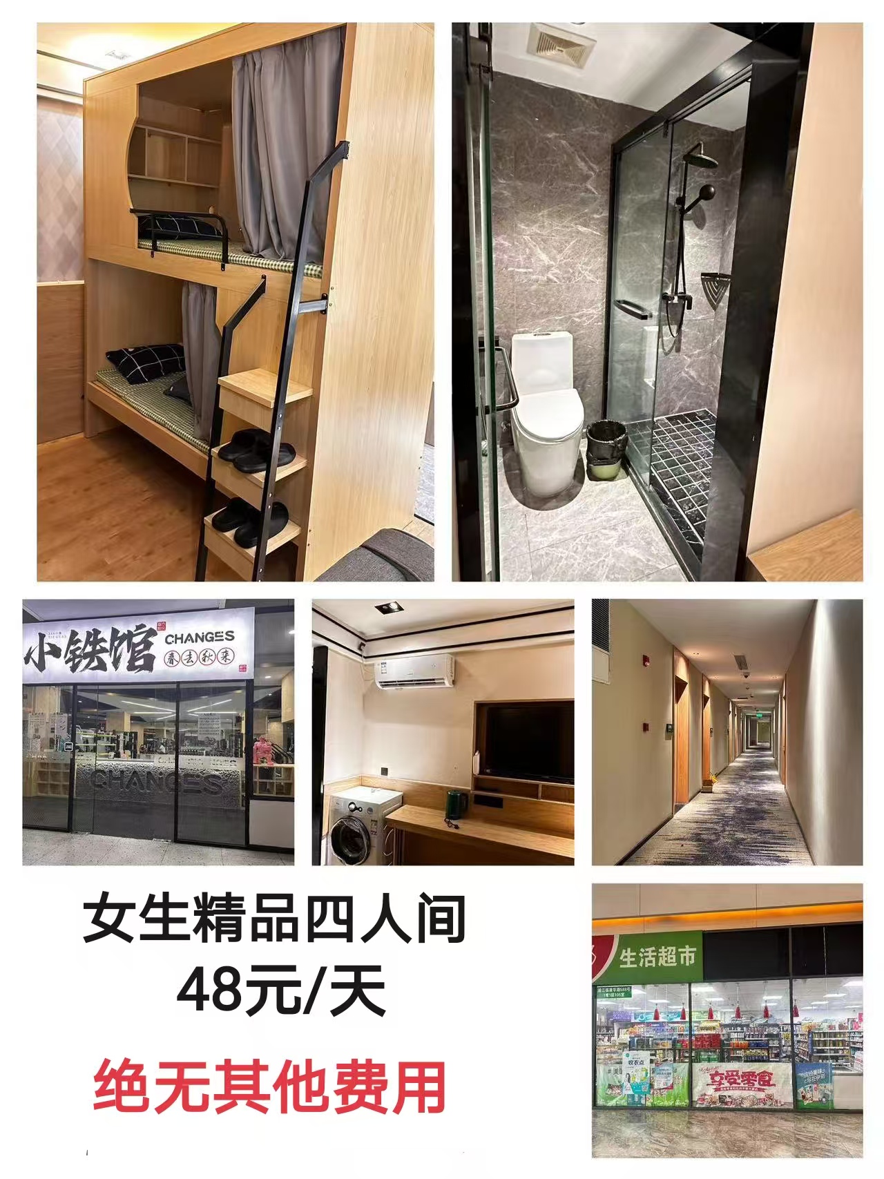 新开安心住公寓 全部太空舱、隐私床帘、席梦思床垫、4,6,8,10人间新开安心住标间130元/天起【费用】 (酒店式公寓)日租:上...