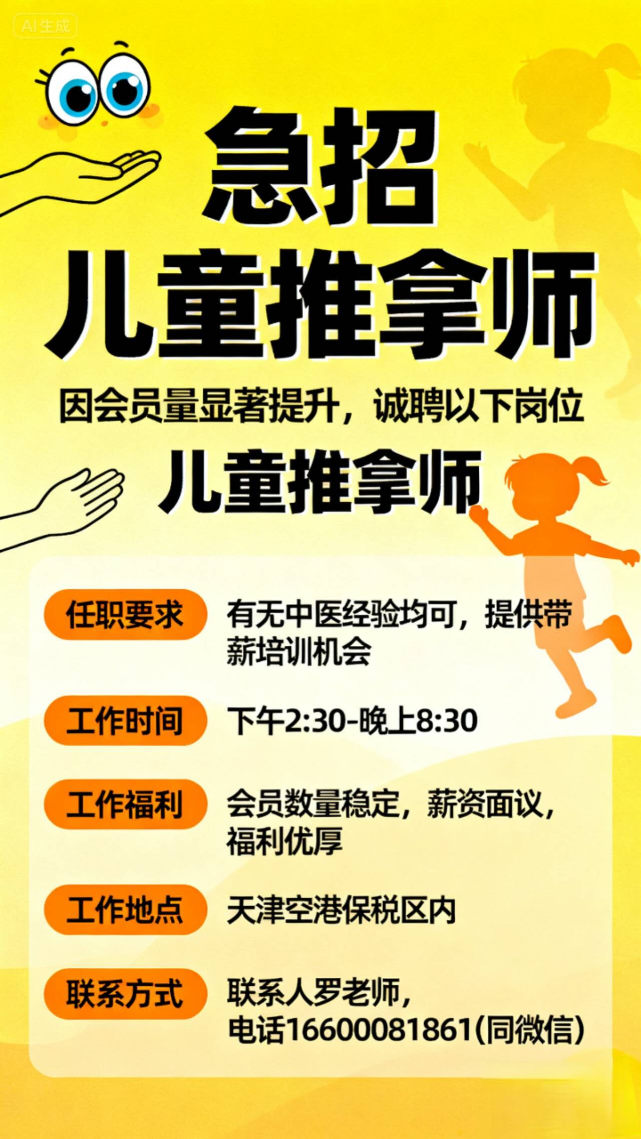 诚聘儿童推拿师